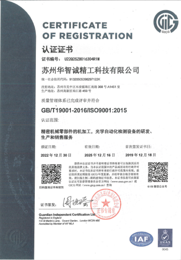 苏州ISO9001认证证书