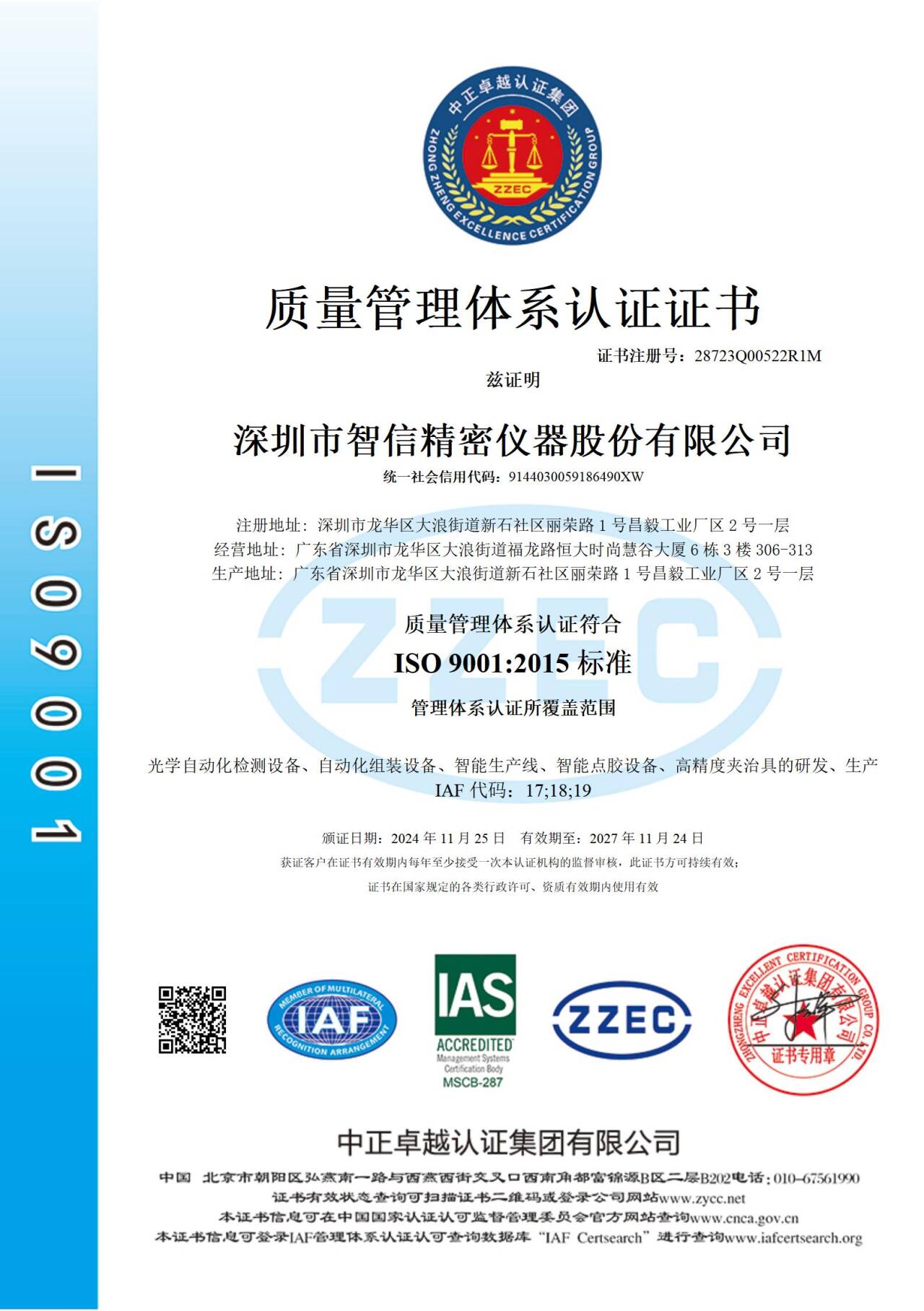 深圳ISO9001认证证书